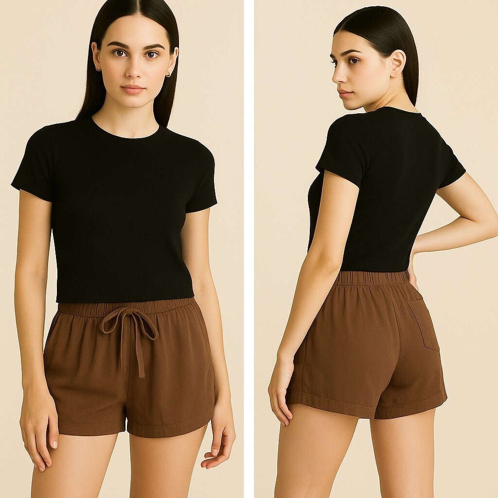 Soft, relaxed, and effortlessly stylish—these chocolate brown lounge shorts are made for all-day comfort. Featuring an elastic waistband with adjustable drawstring, they provide a flexible fit while keeping a clean, minimal look.