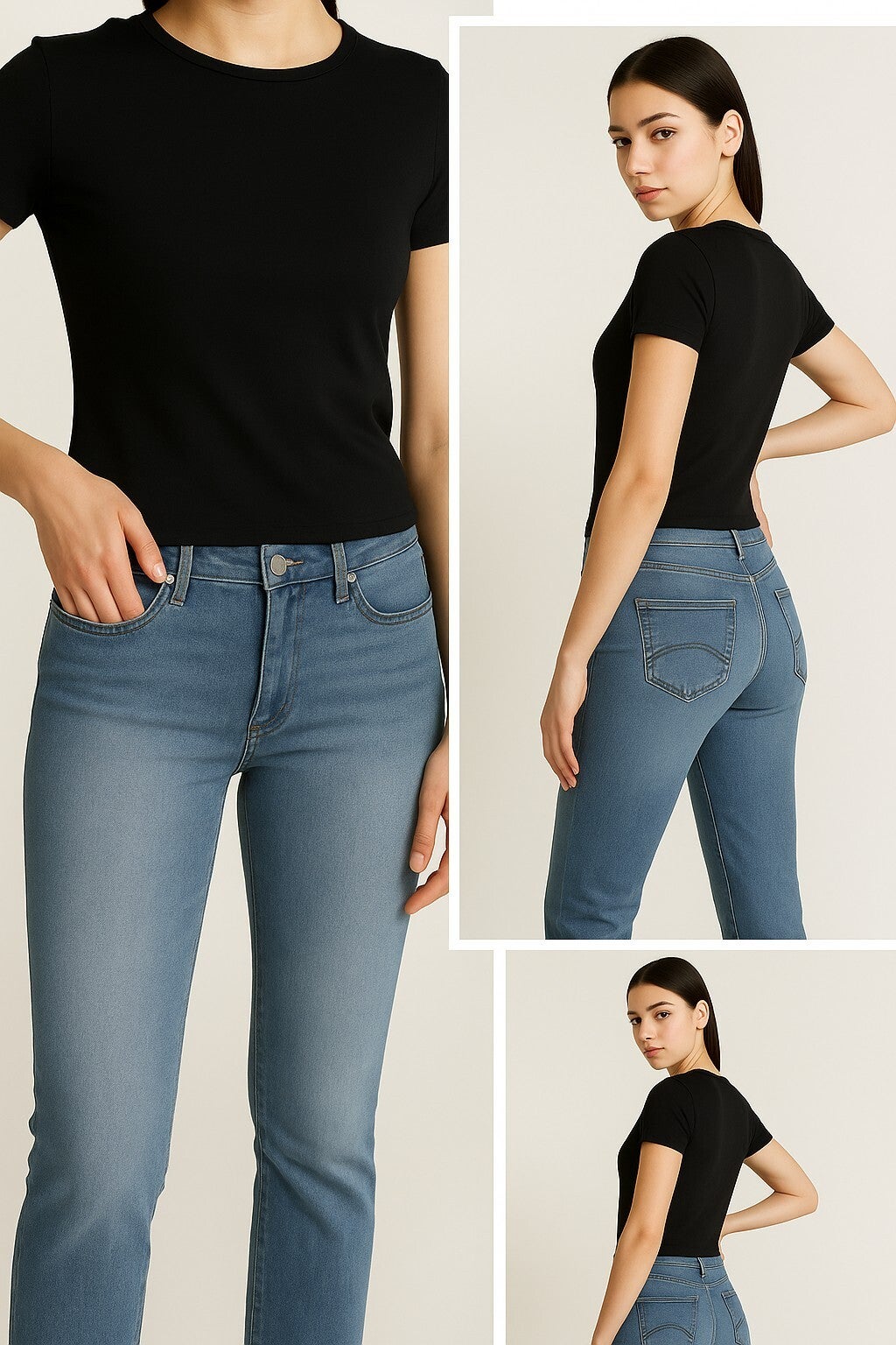 - Clean light blue wash for a fresh, minimal aesthetic